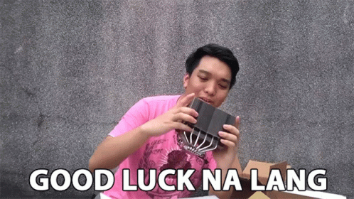 Klager, a man in a pink shirt, opens a box while the text 'GOOD LUCK NA LANG' is displayed on screen.