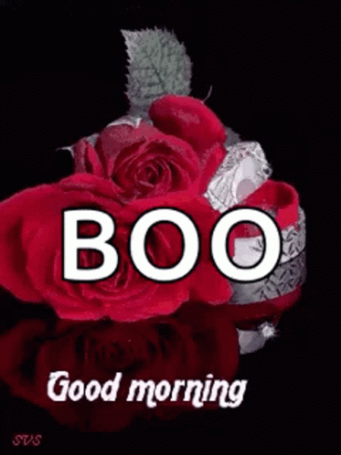 Animated good morning greetings featuring 'BOO' text, flowers, and hearts, dedicated to Armin.