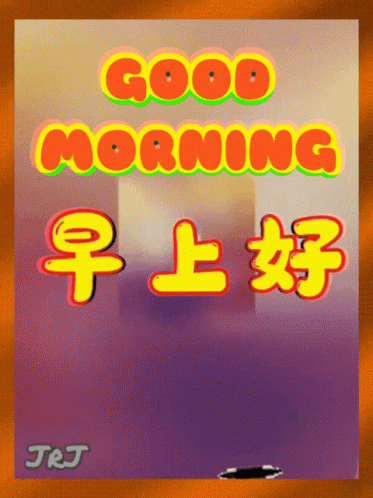 A cheerful cartoon bunny waves 'HI!' on a vibrant 'Good Morning' greeting card with English and Chinese text.