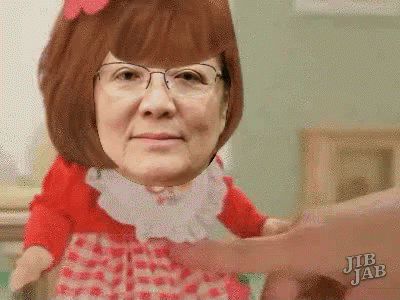 A doll with an older woman's face superimposed humorously farts, creating a funny 'Good Morning Beautiful' moment.