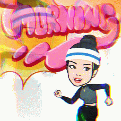 Cartoon character Goo running with 'MORNING' text, ready for a morning jog and workout.