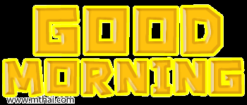 A yellow sign displaying 'Good Morning' text, with subtle flickering effects.