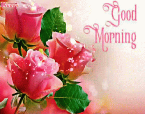 A beautiful animated greeting card featuring pink roses and sparkling effects, wishing a "Good Morning."