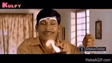 Man with mustache making funny faces, delivering a good morning greeting.