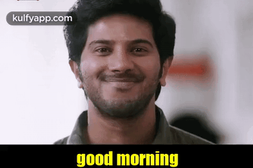 Dulquer Salman smiles warmly, wishing 'good morning' to viewers with a positive vibe.