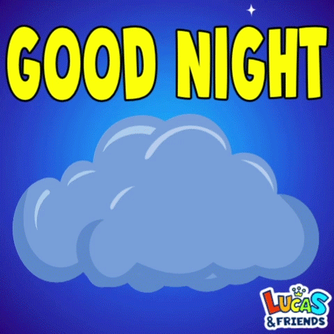 An animated "Good Night" message featuring a smiling moon and clouds from Lucas & Friends.