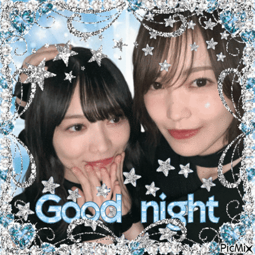 Matsuda Rina and Morita Hikaru from Sakurazaka46 in a sparkling 'Good night' themed image.