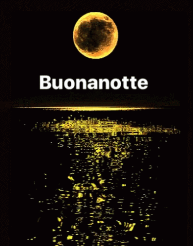 A beautiful full moon reflects on water with 'Buonanotte' text, wishing a good night.