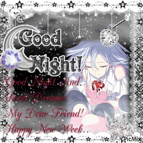 Kanade from Project Sekai in a good night greeting card with a sweet dreams message for a dear friend.