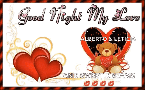 A romantic greeting card wishing 'Good Night My Love' and 'Sweet Dreams' with hearts.