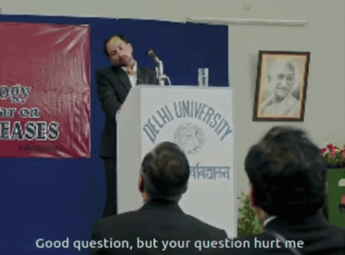 Papi from Tanu Weds Manu Returns delivers the iconic 'Good question, but your question hurt me' line at Delhi University.