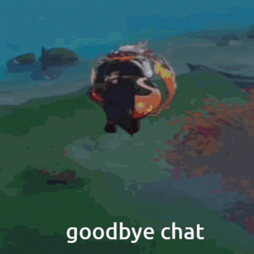 Kazuha from Genshin Impact performs a dramatic dive into the water with a 'goodbye chat' message.