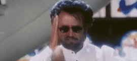 Rajnikanth, wearing sunglasses and a white shirt, adjusts his hair in his iconic style, conveying a good morning message.