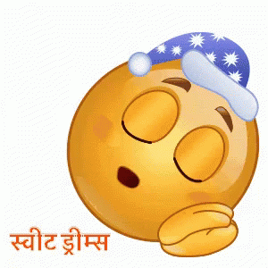 A sleeping emoji wearing a sleep cap, with 'Sweet Dreams' text in Hindi and English.