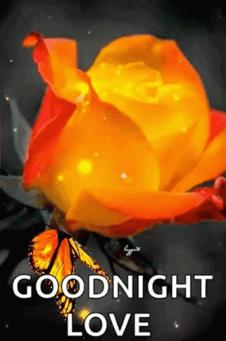 A beautiful butterfly rests on a yellow rose with a 'Goodnight Love' message and sparkles.