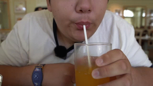Gootoyou reacts with disgust while drinking Pog Juice at Grand Floridian Cafe.