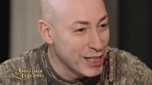 A close-up of Ukrainian journalist Dmitry Gordon's face, with his name visible on screen.