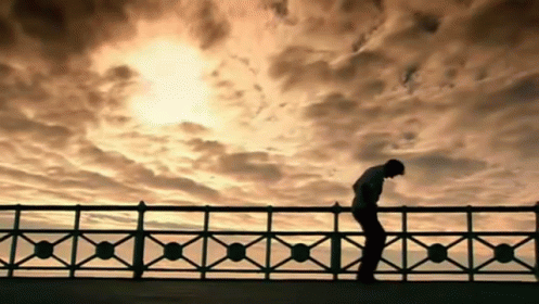 Gordon Ramsay performs an unexpected moonwalk in silhouette on a pier against a dramatic, cloudy sunset sky.