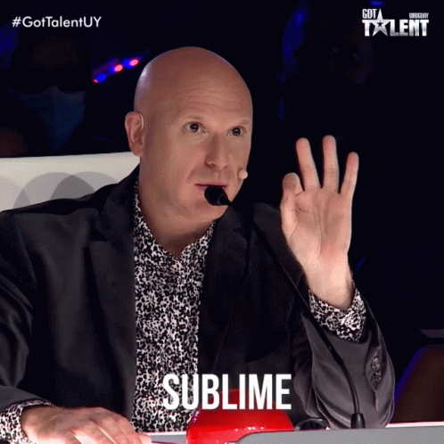 Petinatti gives a 'Sublime' reaction as a judge on Got Talent Uruguay, expressing his approval.