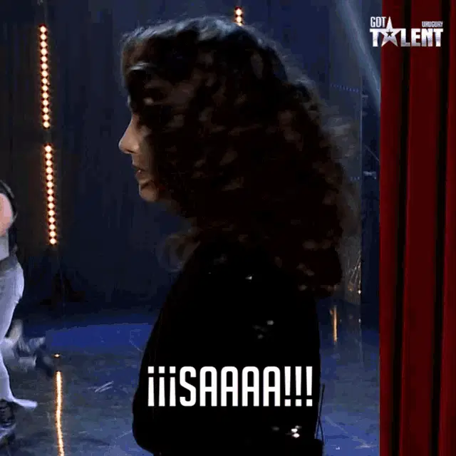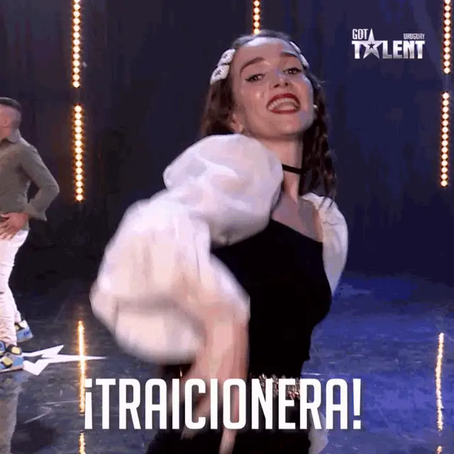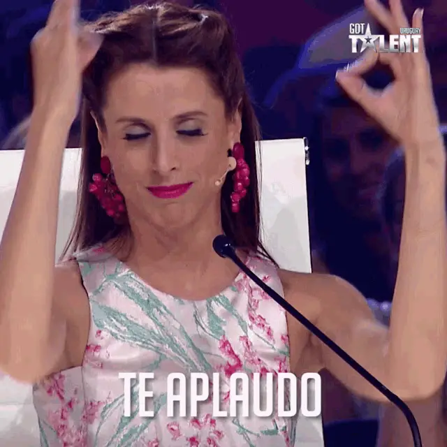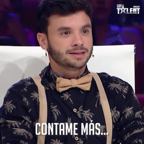 A judge from Got Talent Uruguay, wearing a bow tie, says 'Contame Más...' (Tell Me More...).
