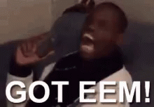 A man reacts with an open mouth as the text 'GOT EEM!' appears, signifying a successful prank or catch.