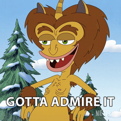 Maurice The Hormone Monster from Big Mouth expresses 'Gotta Admire It' in a snowy setting.