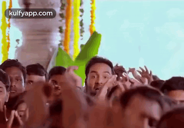 Actor Manchu Vishnu in a crowd, raising his hands and chanting 'Govinda Govinda' at a public event.