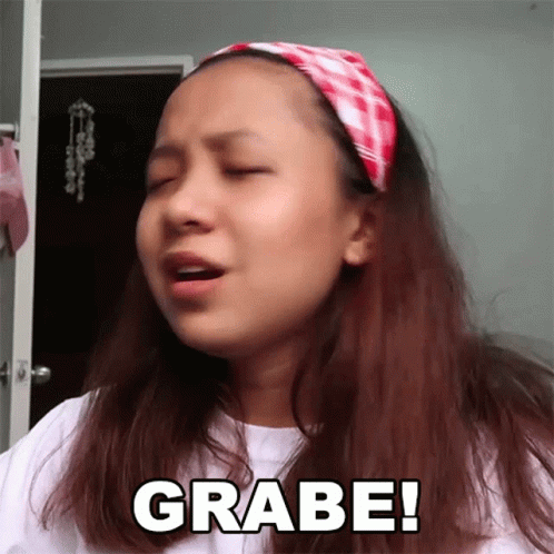 Aliana Villarosa, wearing a headband, reacts with the Filipino exclamation 'Grabe!' expressing strong emotion.