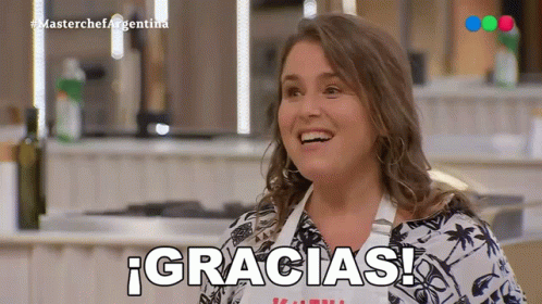 Marcela Acuña smiles and expresses gratitude on Masterchef Argentina, a moment from the popular cooking show.