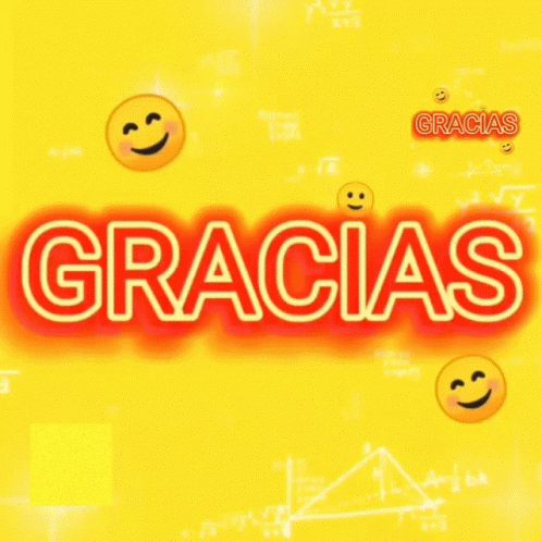 Animated graphic displaying the word 'GRACIAS' (Thanks) in red on a yellow and white background.