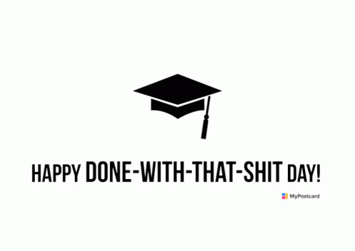 A graduation cap graphic with the humorous text 'HAPPY DONE-WITH-THAT-SHIT DAY!' for graduates.