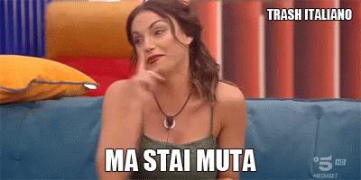 Francesca De Andre's iconic 'Ma Stai Muta' moment from Grande Fratello, sitting on a couch.