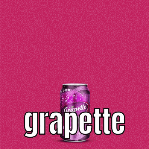 A Grapette soda can with condensation and bubbles, set against a vibrant pink background for a refreshing feel.