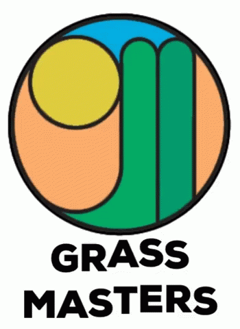 The colorful logo for Grass Masters Artificial Turf, featuring a unique green design within a circle.