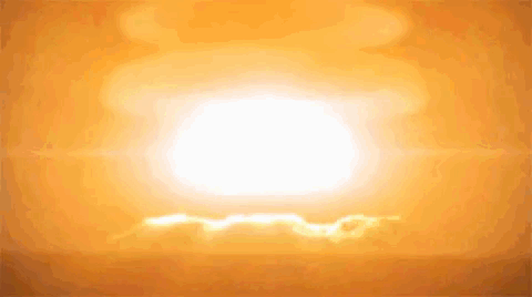 A powerful nuclear explosion forming a mushroom cloud, featuring Gravewalker and Nuncamorto.