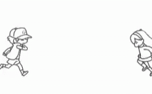 Animated sketch of two Gravity Falls characters running towards each other for a warm hug.