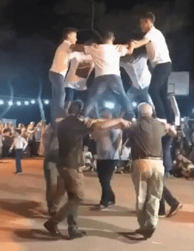 Men perform an impressive human pyramid as part of a traditional Greek dance during a lively Panigiri festival.