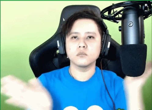 Green Dumpling Ceddy, wearing headphones, makes a praying gesture and then the sign of the cross.