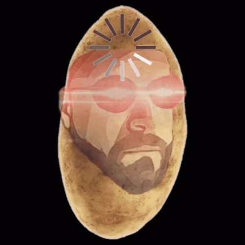 A potato with Gregzaj's face, glowing eyes, and a buffering loading bar, creating a humorous meme.