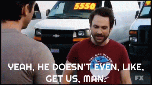 Charlie from It's Always Sunny in Philadelphia expresses that someone doesn't understand them, in a scene with another man.
