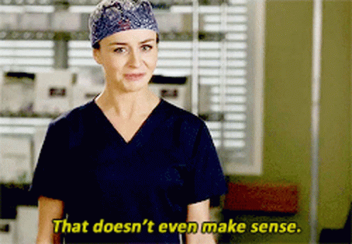 Amelia Shepherd (Caterina Scorsone) from Grey's Anatomy reacts, saying 'That doesn't even make sense.'