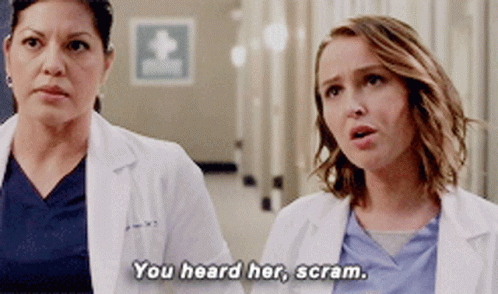 Dr. Jo Wilson (Camilla Luddington) tells someone to 'scram' in a tense Grey's Anatomy hospital scene.