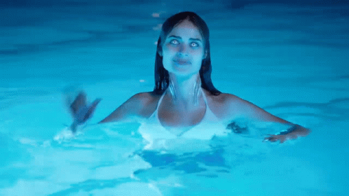Grimm Lebedyan48 as an H2O mermaid in a glowing blue pool, with her eyes turning white.