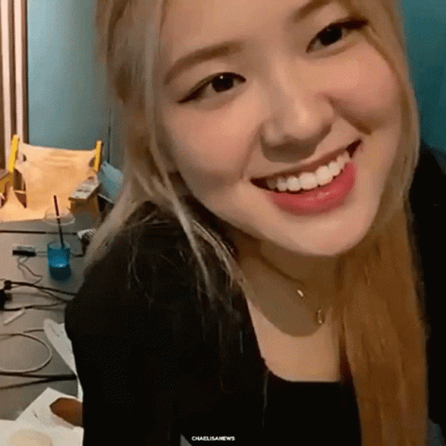 BLACKPINK's Rosé (Park Chaeyoung) smiling brightly at the camera, showing her teeth.