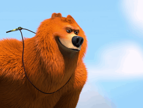 Grizzy the bear from Grizzy And The Lemmings looks on with a satisfied smile, a rope around his neck.