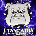 Animated bulldog mascot for Grobari Partizan, set against a dynamic blue lightning background.