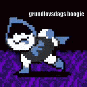 a pixel art drawing of a dog that says grundlov