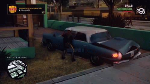 A mission failure in Grand Theft Auto: San Andreas, showing a car and the 'Mission Failed' message.