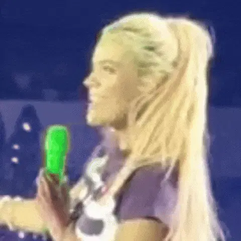 Karol G, with her signature pink hair and heart tattoo, speaks during a Gteam Eligteam appearance.