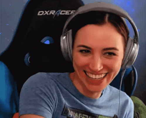 Becca Scott from Good Time Society laughs heartily while wearing headphones and making tickling gestures.